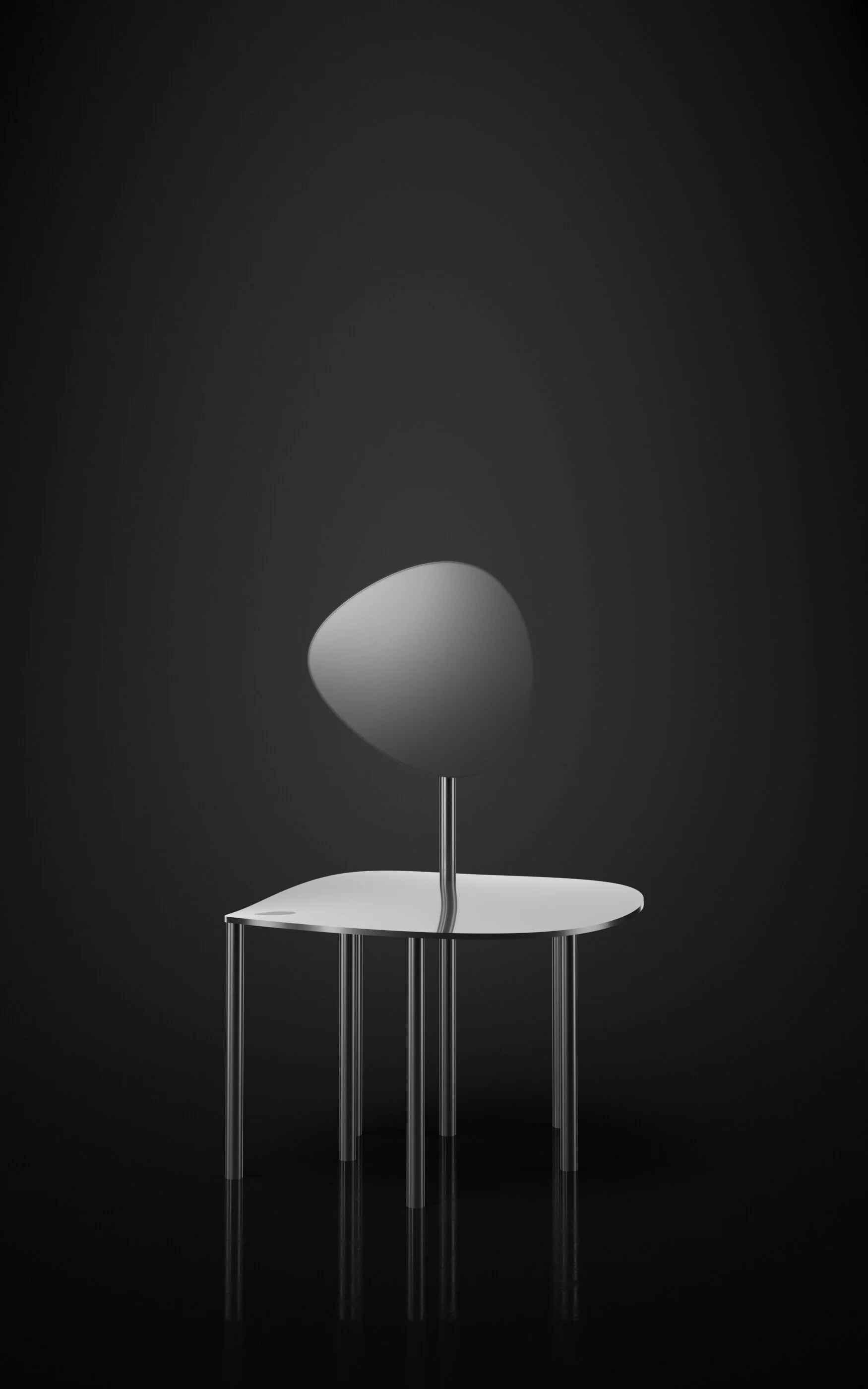 Polished stainless steel chair designed for the art cabins in Hill of the Arts in Turin, Italy.